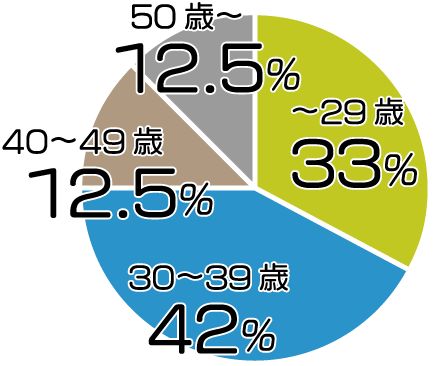 育児休暇取得率100%、有休使用平均日数11.4日間と、社員の「J」を大切にそして、やりがいを持って仕事に臨んでいただける環境づくりに力を入れております。